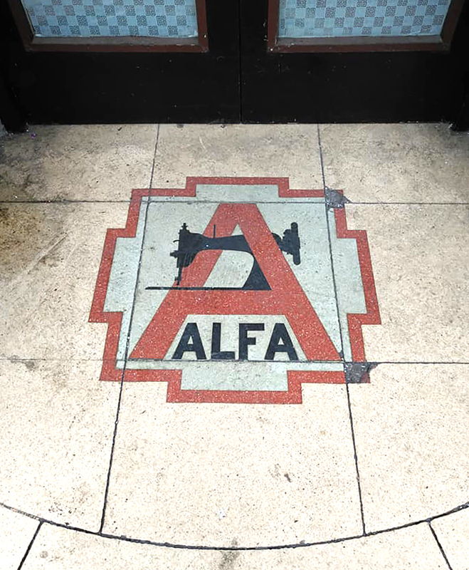 <!-- wp:paragraph --><p>Mosaico corporativo confeccionado artesanalmente en <em>terrazo</em>, con el conocido logotipo de las máquinas de coser Alfa, estratégicamente situado en el umbral de la puerta de acceso al bello edificio que fue la casa de<strong> Manuel Padrón Quevedo</strong>, en la Calle León y Castillo de Las Palmas de Gran Canaria, cuya planta baja albergó uno de los primeros establecimientos distribuidores de la marca. Fue construido en 1950 por el arquitecto <strong>Rafael Massanet</strong> y es un ejemplo de la arquitectura de los años 50 del pasado siglo.</p><!-- /wp:paragraph --><!-- wp:paragraph --><p>Lamentablemente, en 2023 se perdió para siempre ese bonito elemento -hasta entonces superviviente- del patrimonio gráfico de la ciudad. El caso fue especialmente sangrante para Insula Signa, pues al advertir que se estaba llevando a cabo una reforma en el edificio, hicimos gestiones para intentar preservarlo. En mayo de 2021 contactamos con la arquitecta <strong>Mª Luisa Martínez Zimmermann</strong>, encargada de la reforma, quien ante nuestra preocupación por la conservación de la pieza, nos tranquilizó manifestando que tanto ella como el propietario eran conscientes de su valor y que su intención era respetarla. </p><!-- /wp:paragraph --><!-- wp:paragraph --><p>Contactamos incluso con <strong>Luis Fano</strong>, director de la firma <strong>Alfa</strong>, con sede en Éibar (Guipúzcoa), para averiguar el origen del bonito mosaico de terrazo. Tras algunas indagaciones, nos comunicó que ellos no habían intervenido para nada en su confección e instalación y nos informó de que la representación de la marca en Las Palmas la ostentaba la familia <strong>Álvarez Vidal</strong>, unos de los primeros representantes de la firma en todo el estado. Esta información nos llevó a contactar con con <strong>Alejandro Álvarez</strong>, que nos confirmó que fue su abuelo <strong>Manuel Álvarez </strong>quien encargó y mandó instalar el logotipo, por iniciativa propia, siendo un caso extraordinario de fidelidad a la marca y amor por el producto que representaba. </p><!-- /wp:paragraph --><!-- wp:paragraph --><p>Finalmente, todo nuestro esfuerzo e interés, junto a la historia familiar de este comercio, quedaron menospreciados y sepultados bajo tres capas: una de cemento, otra de nuevas baldosas sin ningún interés, y otra —la más espesa— de desprecio y falta de respeto. Para más guasa, tras la reforma el edificio fue bautizado como <strong>EDIFICIO ALFA</strong>, adosando unas insulsas letras corpóreas a la fachada. Lamentable.</p><!-- /wp:paragraph -->
